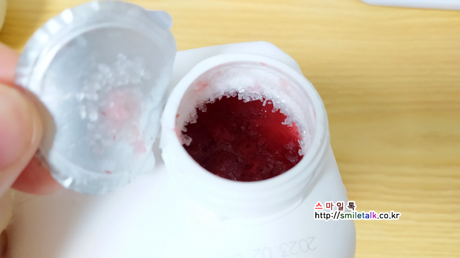 딸기 과즙이 듬북 들어 있는 것을 눈으로 바로 확인할수 있어요.
