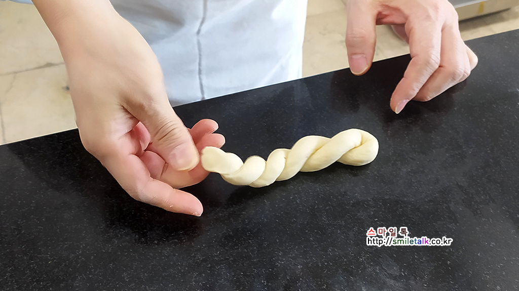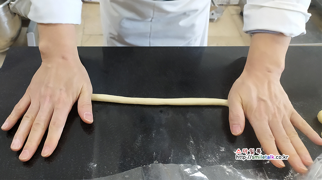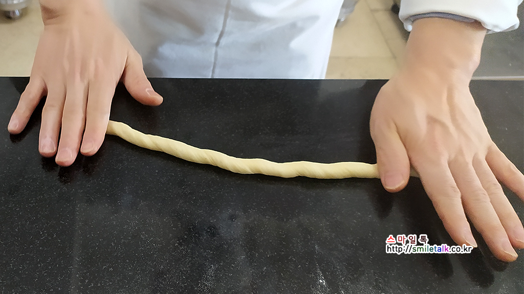 8자형은 25~30cm 정도, 트위스트형(꽈배기형)은 30~35cm 정도로 밀어펴준다.
