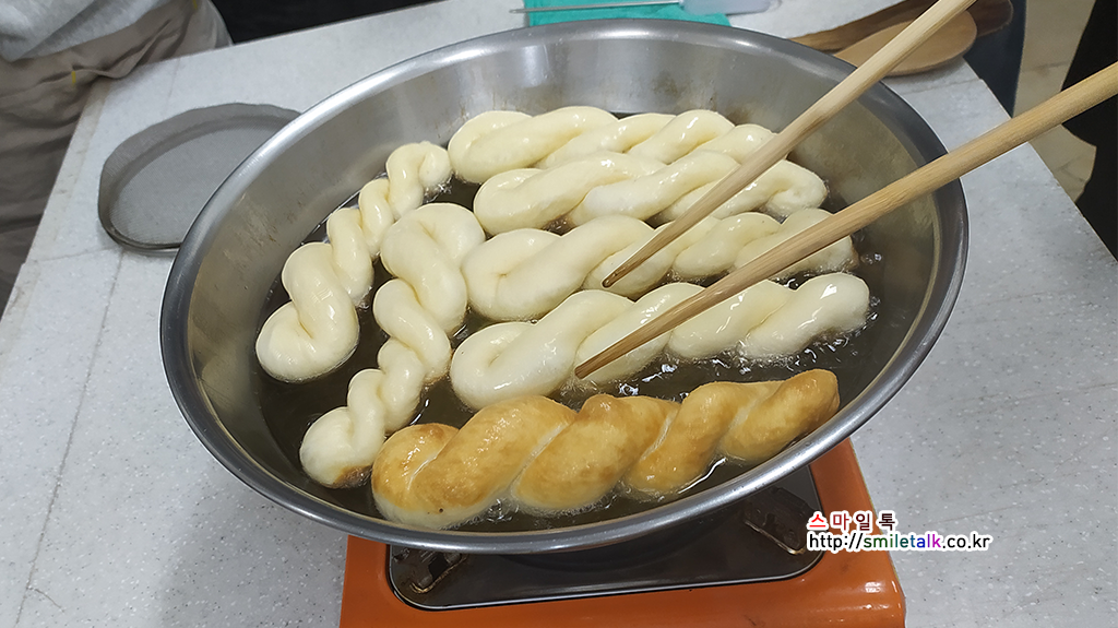 튀긴후 따뜻한 느낌이 있을때 설탕을 뭍혀서 제출하면 된다.
