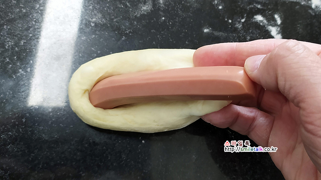 소시지를 감싼후 반대편을 잘 접어준다.