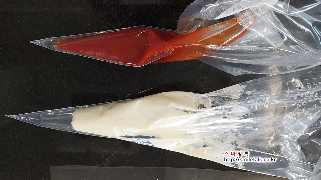 짤자머니에 담아서 준비한 케챱을 뿌려준면되고,