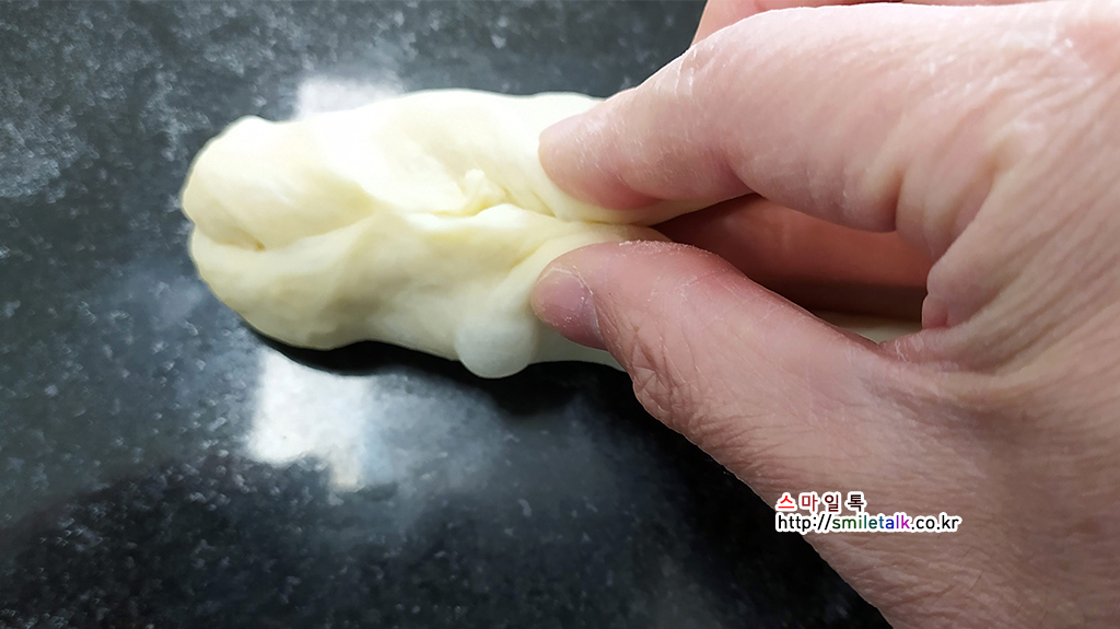 반죽을 손으로 당겨주면 된다.
