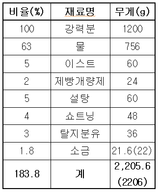 * 비상식빵이니 반죽은 최종단계에서 20% 정도 더 반죽을 쳐준다.