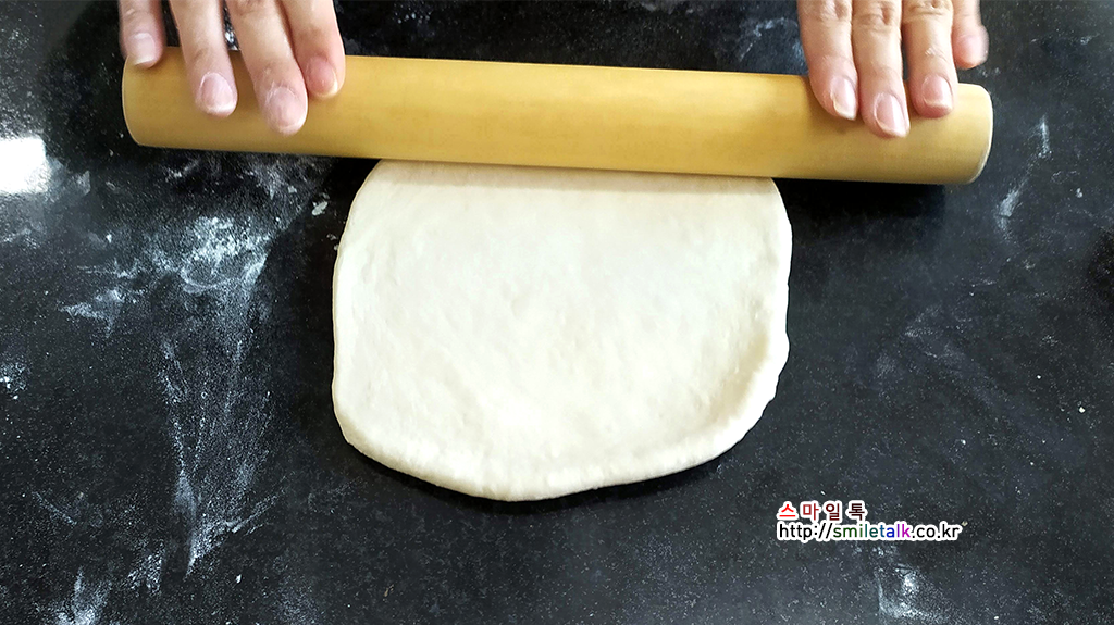 밀대를 이용해서 일정한 두께로 밀어펴준후,