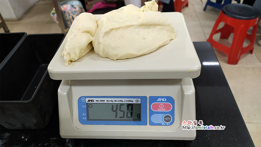 450g씩 분할한다.