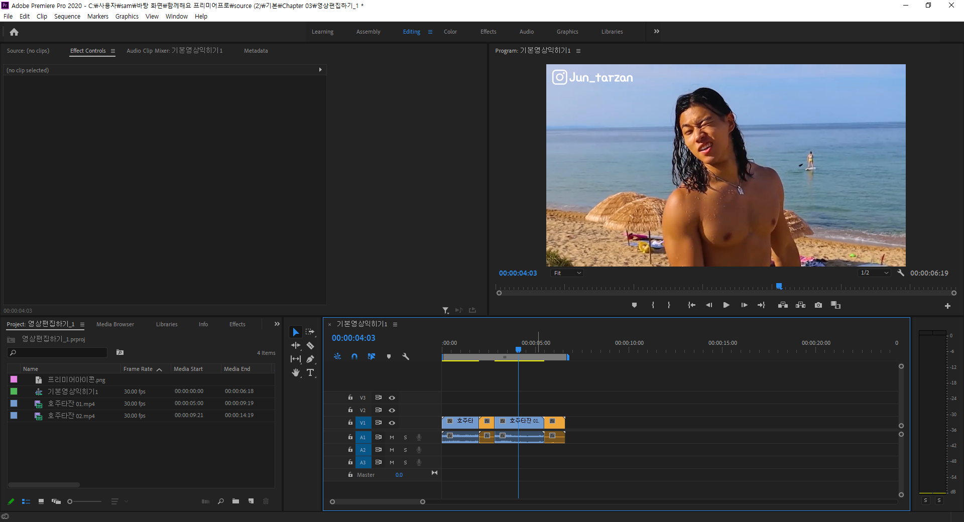 프로젝트 생성부터, 기본적인 영상을 잘라보고, 인서트, 오버라이트 해보고,