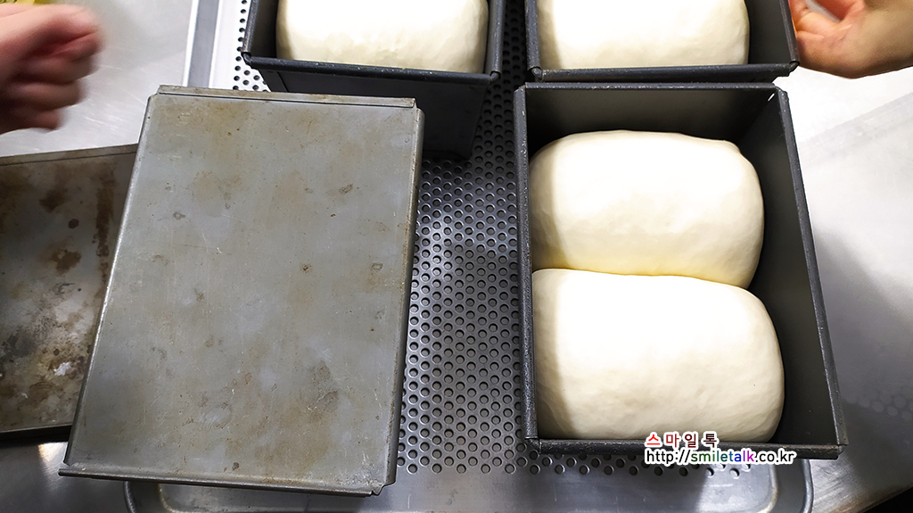 사각(풀만)식빵틀에 2개씩 넣은후,