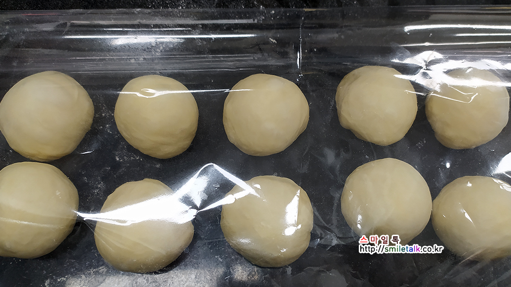 분할한 반죽을 둥글리기를 한후,