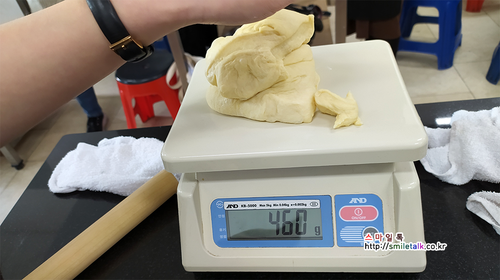 반죽이 완성되면 윗면을 매끄럽게 만든후,