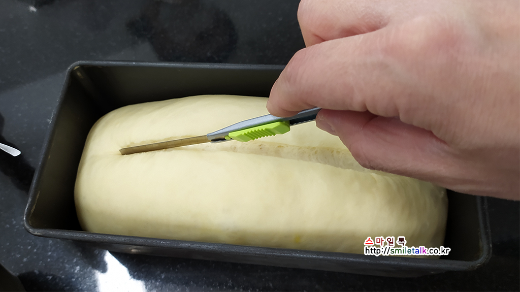 반죽 윗부분에 1cm 깊이 정도로 갈집을 내준다.