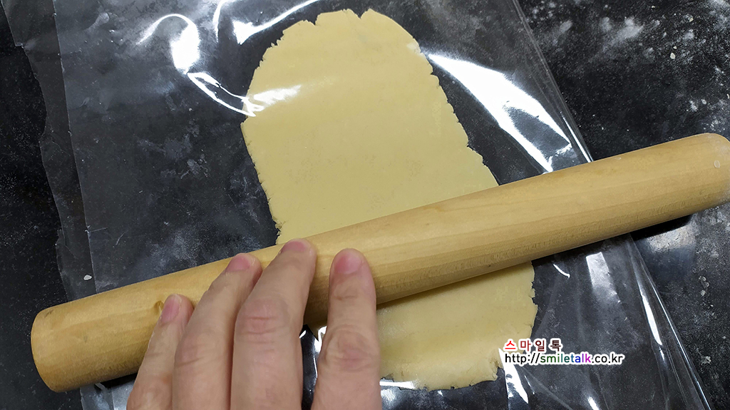 토핑용 비스킷은 작업대에 그대로 밀어도 되나,