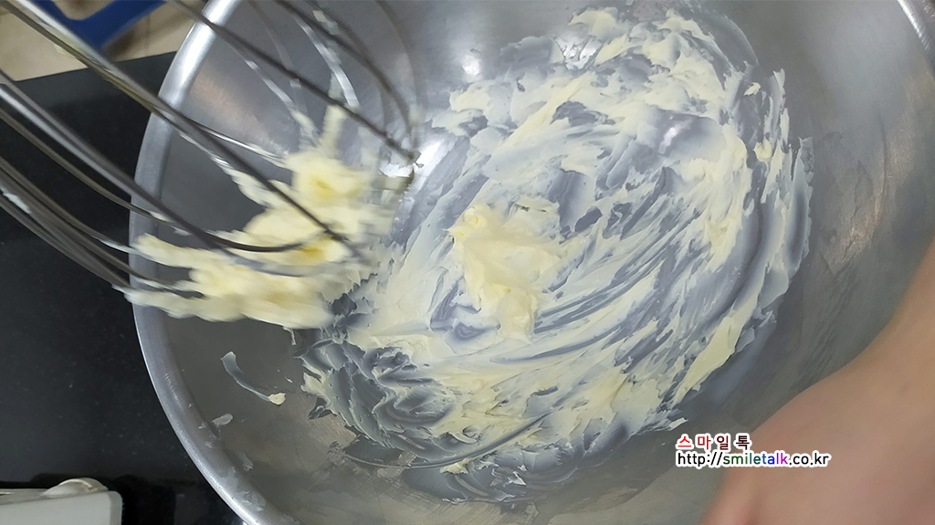 먼저 버터를 볼에 넣고 손으로 휘핑해서 풀어준다.