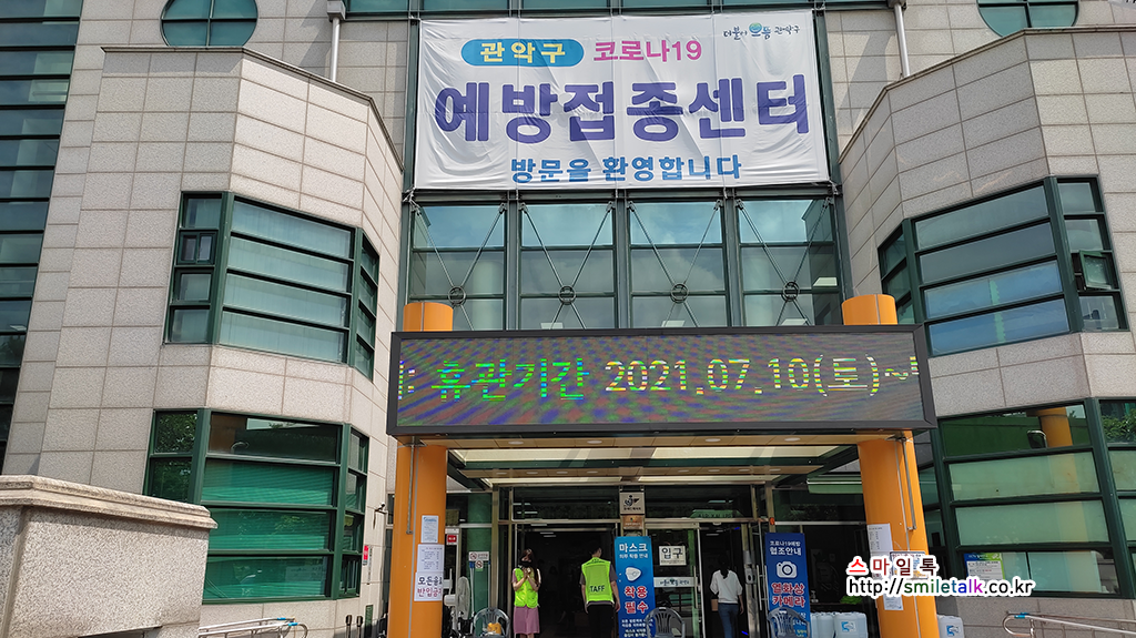 예약된 시간보다 조금 일찍 관악구예방접종센터(관악구민종합체육센터)로 갔어요.