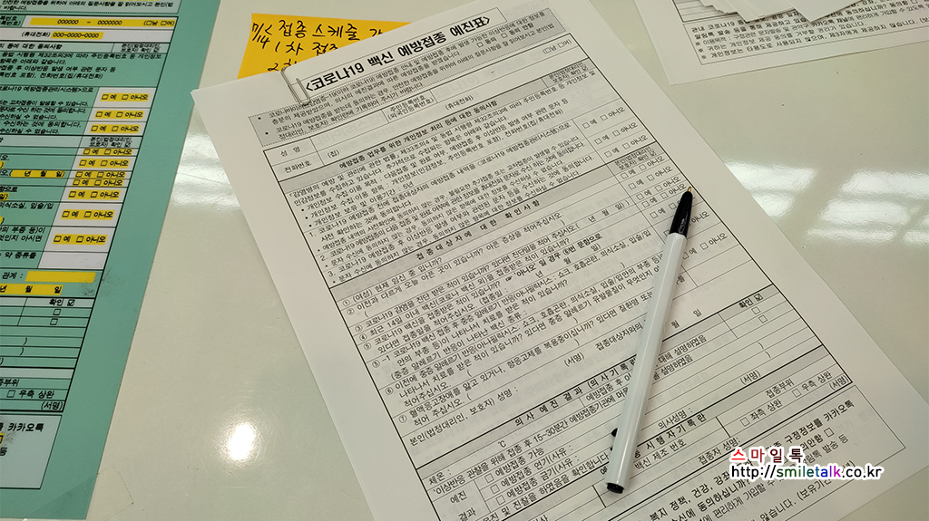 코로나19 백신 예방접종 예진표를 작성하는데,