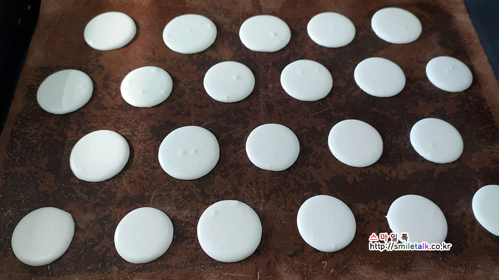 초코 마카롱쿠키의 코크(coque)를 만들어준다.