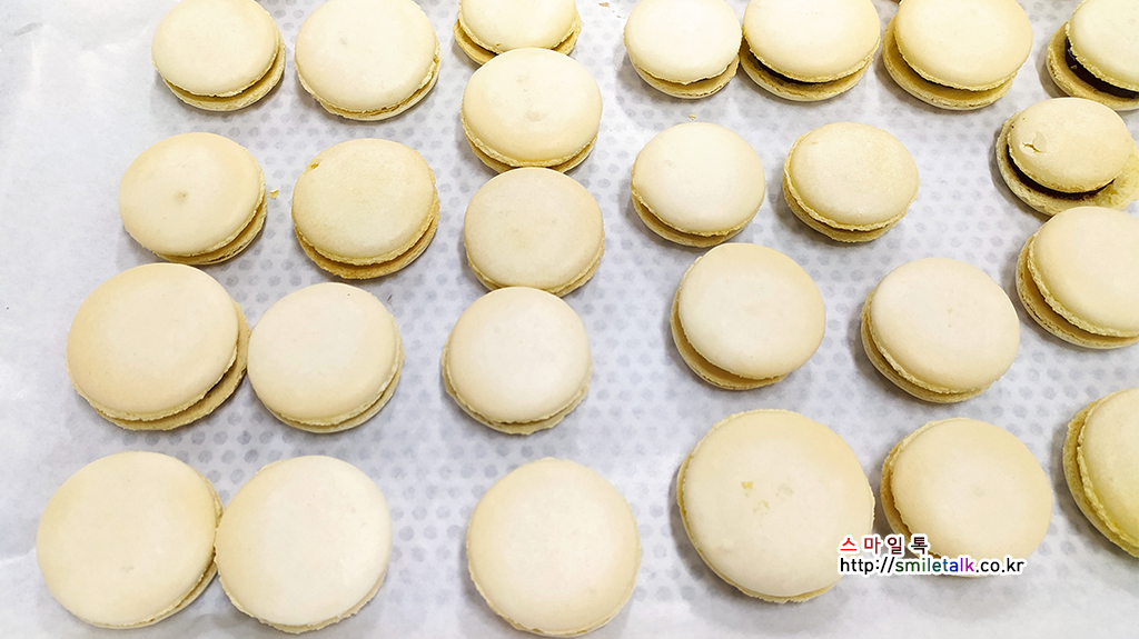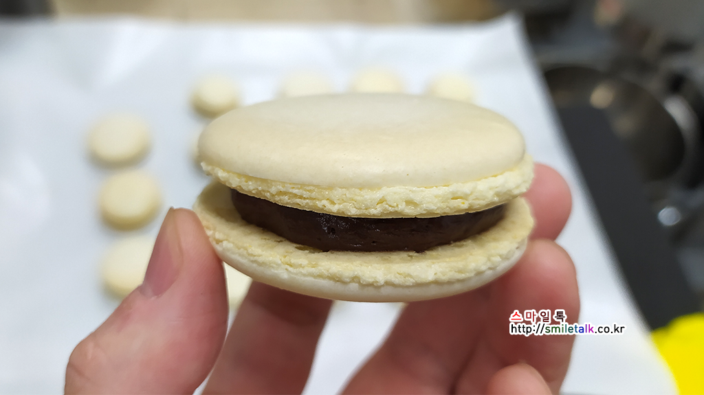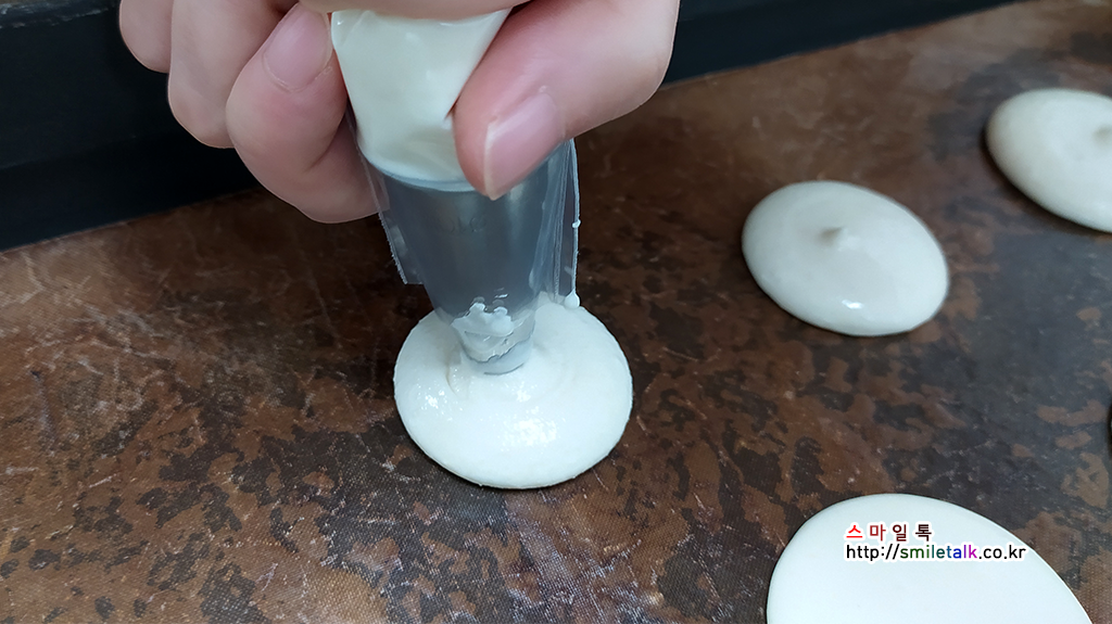 준비해 놓은 마크롱 코크안에 짜서 샌드를 충전해준다.