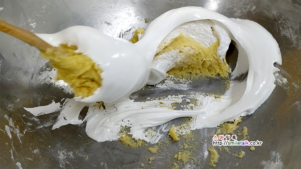 준비한 머랭을 3번 정도로 나눠서 넣어가면서 섞어준다.