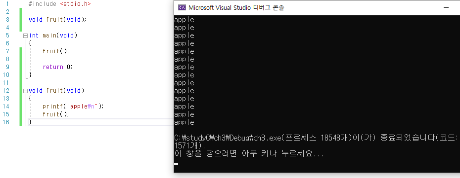 'apple' 문자를 반복해서 출력하다가 계속 반복하지 않고 어느정도 출력을 한후 종료가 되는데,