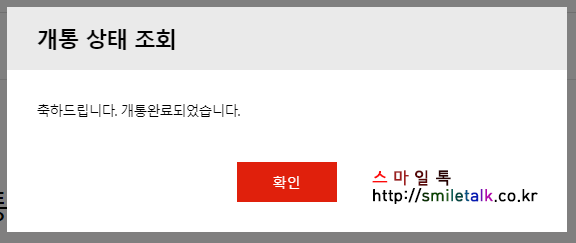 마지막에 개통 완료되었다는 팝업창이 뜨면,