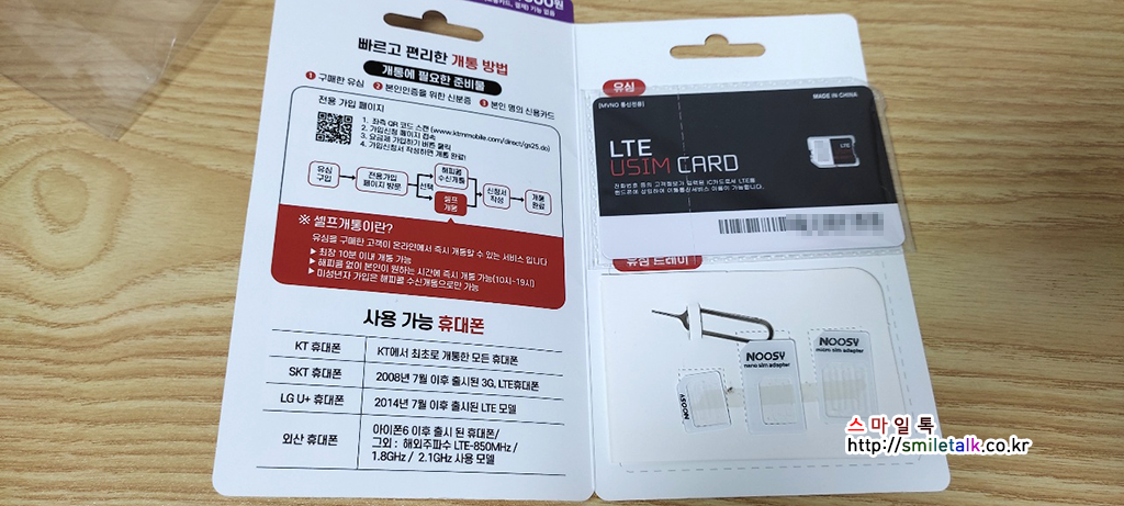 유심을 개봉하니, 지금은 대부분 나노유심을 사용하지만,