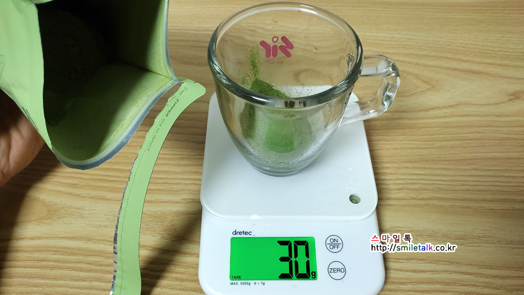만들기 위해서 먼저 컵에세미 제주20말차 30g을 부어주었어요.