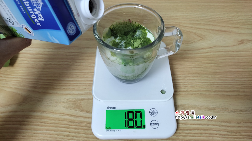 다음에는 우유 180g을 부어주고,