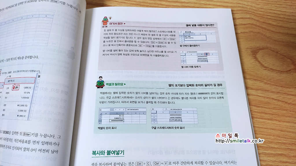'엑셀과 달라요' 부분을 통해서 기존에 사용하던 엑셀에서와 다른 부분을 따로 설명해 주고 있어서,