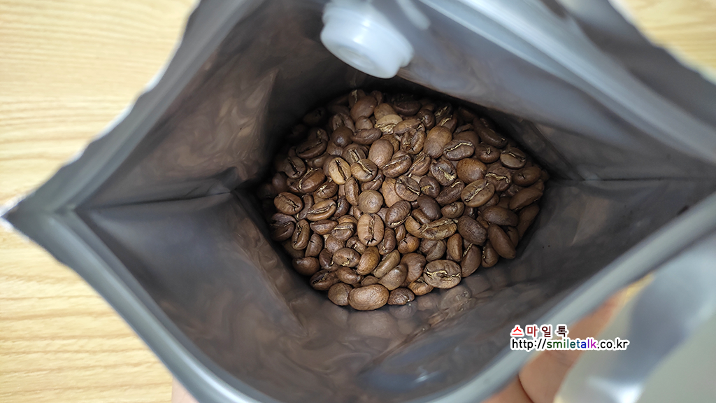 볶은지 얼마 안되서 개봉했을때 코로 들어오는 향이 너무 좋았어요.