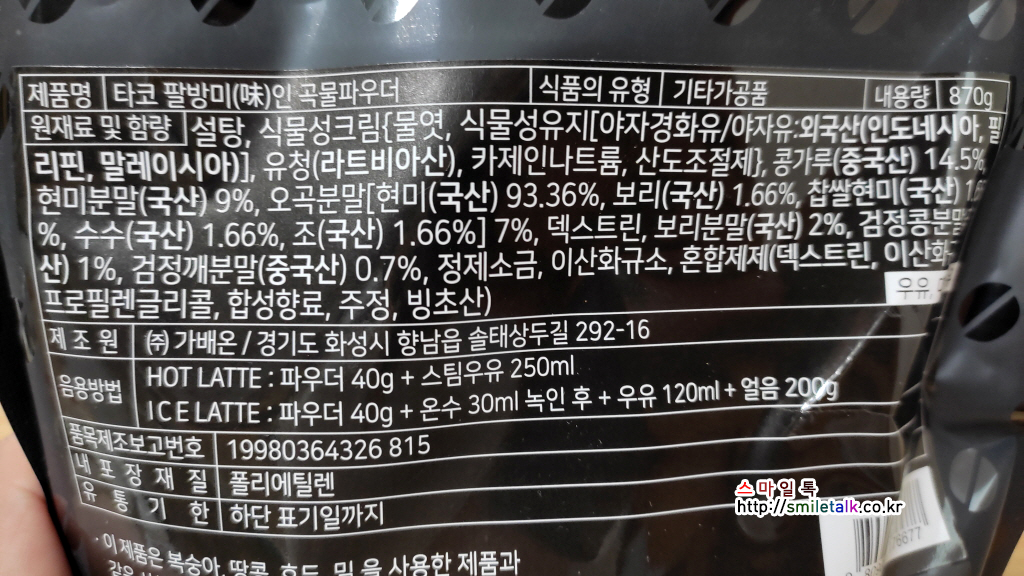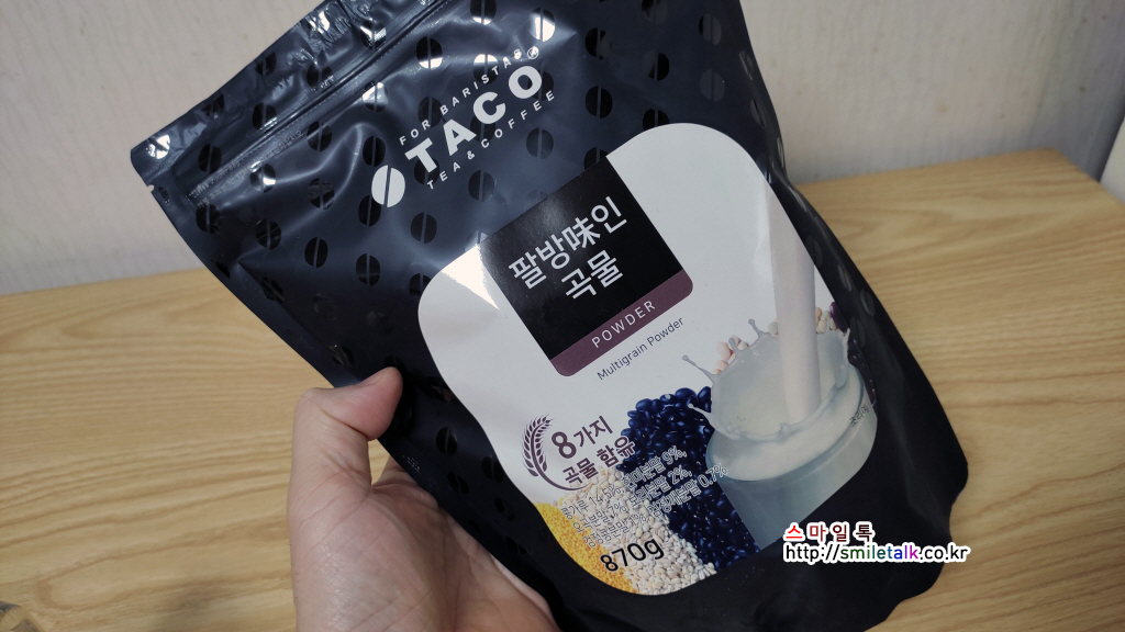 '타코 팔방미인 곡물파우더' 로 집에서도 건강한 곡물라떼를 드셔 보세요