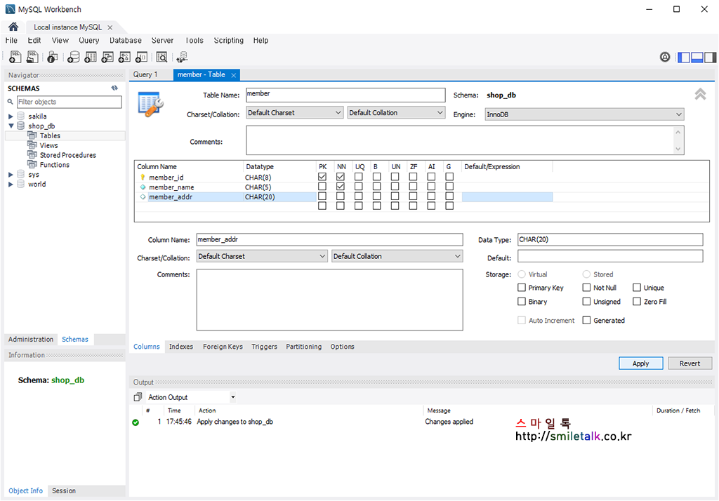 쇼핑몰 데이터베이스(shop_db)와 테이블(member, product)를 만들어 보고,