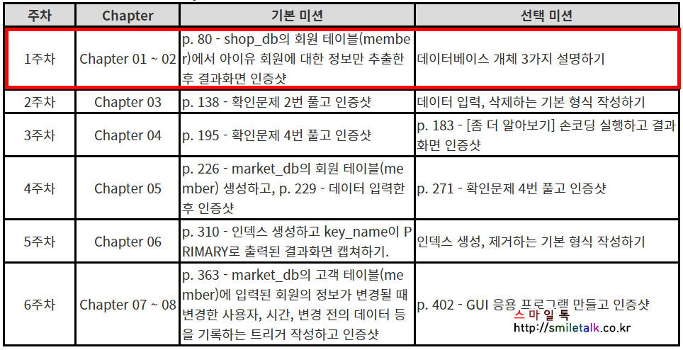 혼자공부하는 SQL 스터디 1주차는 교재의 챕터 1, 2 부분이며,