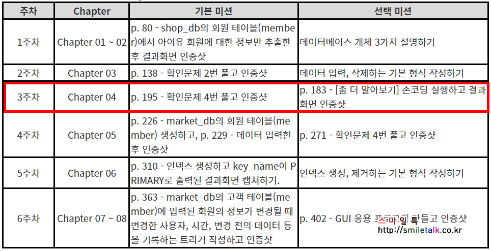 혼자공부하는 SQL 3주차 학습인증 및 미션완료