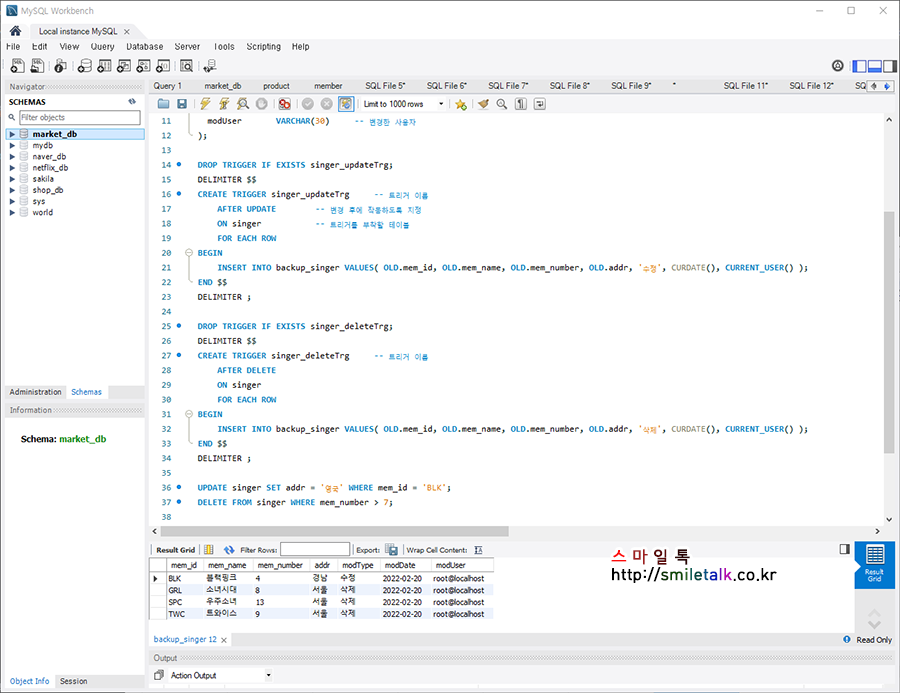 기본미션: p.363 - market_db의 고객 테이블(member)에 입력된 회원의 정보가 변경될 때 변경한 사용자,
