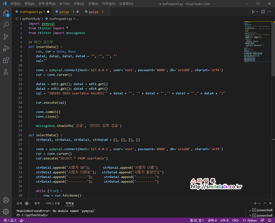 messagebox.showinfo('성공', '데이터 입력 성공')