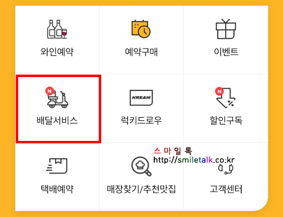 메인 페이지에 '배달서비스'라고 찾기 쉽게 있어서,
