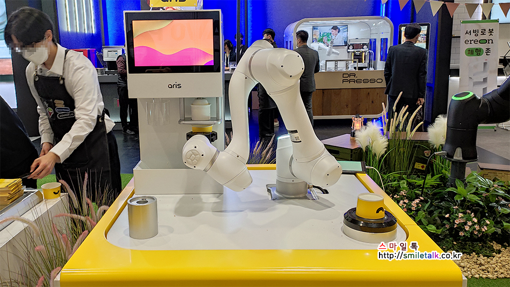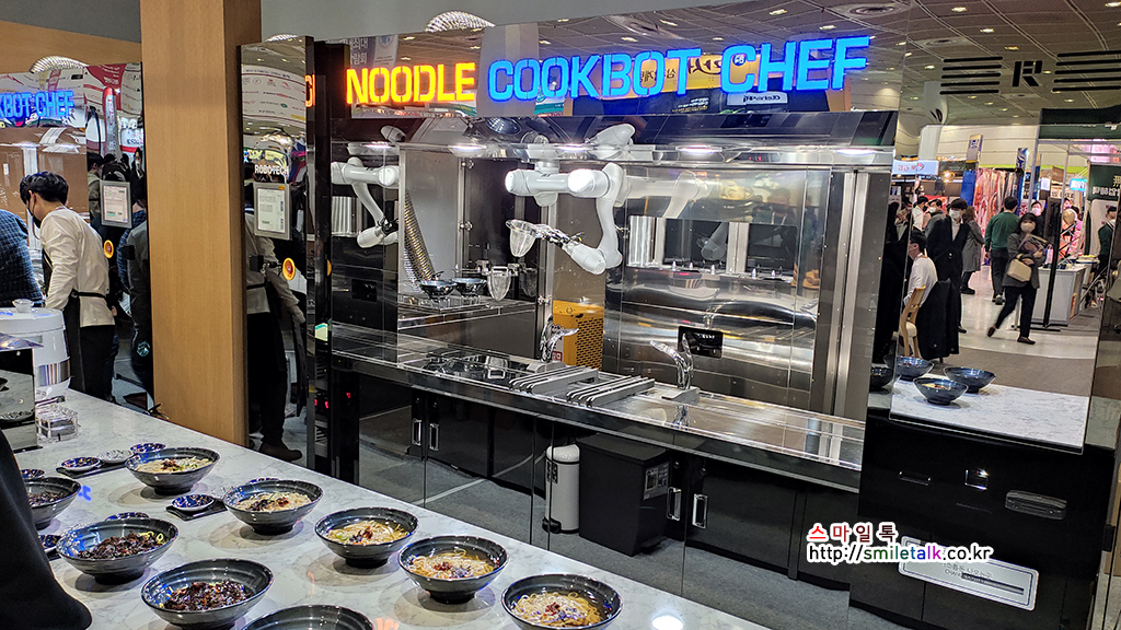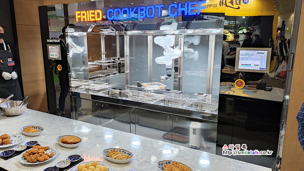 로봇 바리스타 외에 주방에서 면요리나, 튀김 요리를 하는 쿡 로봇 쉐프도 처음으로 선보였는데,
