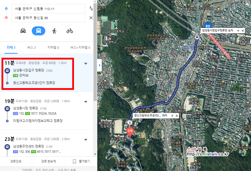 동일하게 마을버스 관악08번 버스로 11분 정도 소요되니,
