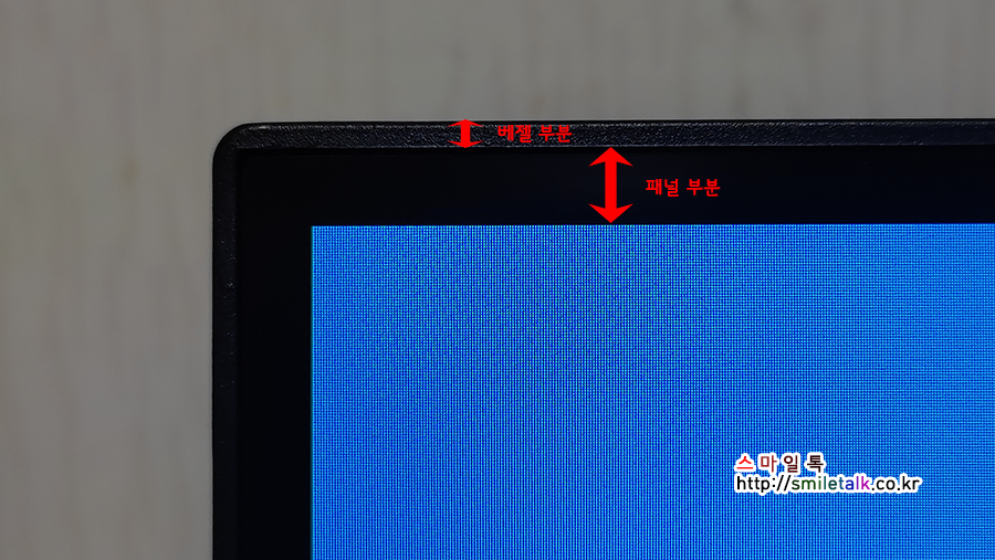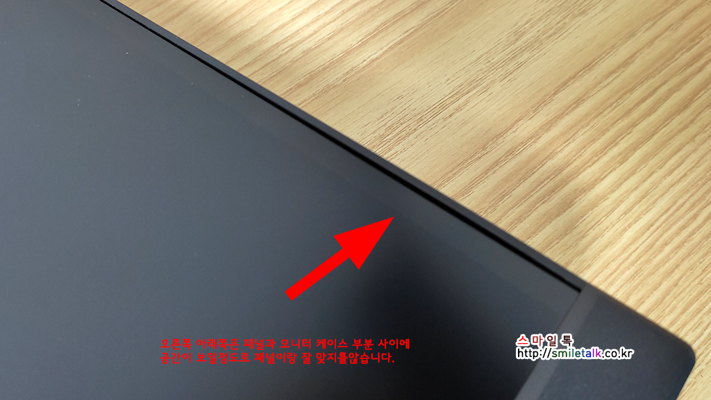 오른쪽 아래쪽은 아예 패널과 베젤 사이에 공간도 떠있습니다.