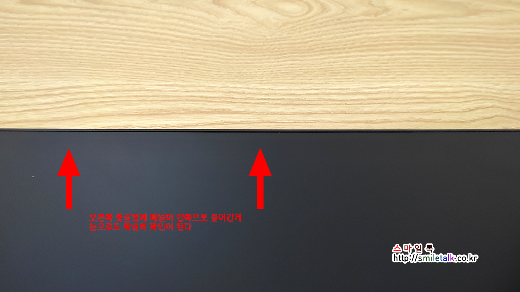 오른쪽 끝부분은 더 확실하게 패널이 안쪽으로 들어간 것을 볼수 있습니다.