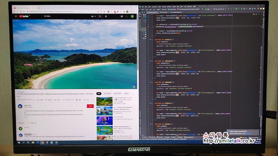 유튜브 영상과 개발툴 안드로이드 스튜디오를 동시에 실행해도,