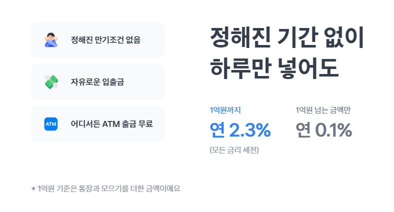 기존에 2.0% 에서 2.3%로 토스뱅크 이자(금리)가 0.3% 올랐어요.