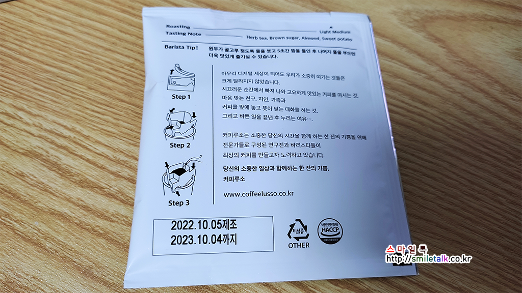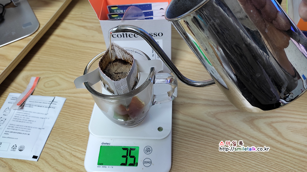 드립백 제품이기 때문에 따로 원두를 그라인더로 갈고 할필요 없이,
