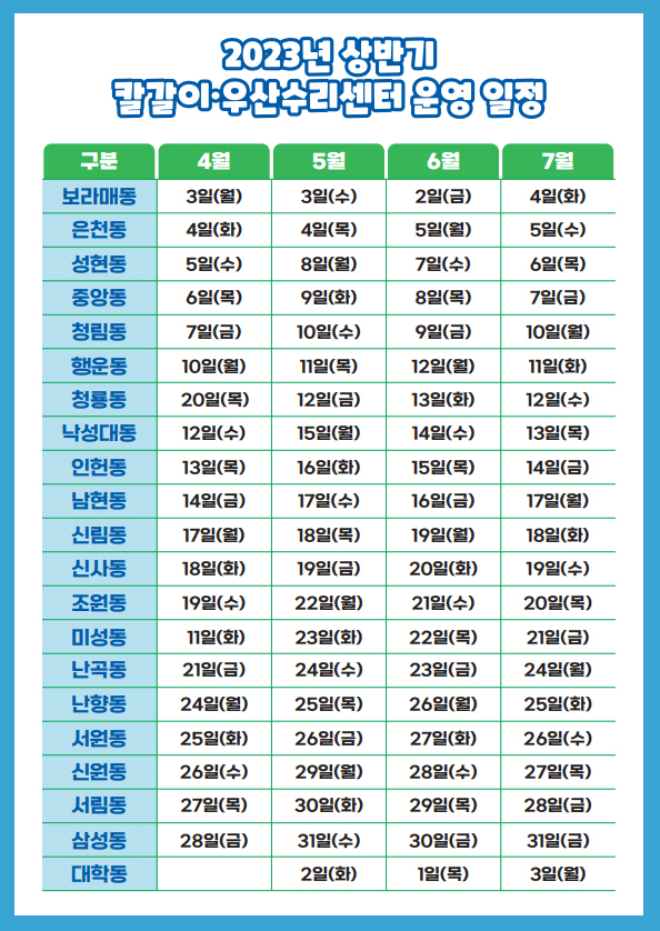 고장난 우산도 무료로 수리를 해준다고 하니, 위에 동별로 일정을 참고 하셔서,